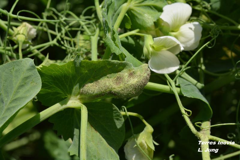 Moyen : 10 à 20% des plantes présentent des symptômes sur feuilles, ou tige et parfois sur gousses