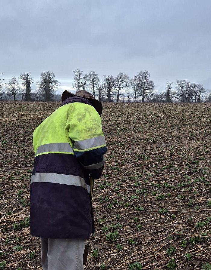 Arthur a tenté de semer du blé sous couvert de trèfle pour la campagne 2024 sans grand succès. Le trèfle a pris le dessus même après une régulation par pâturage.