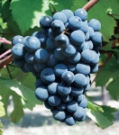 Grappes moyennes, cylindro-coniques, ailées, plus ou moins compactes, pédoncules moyens avec une partie lignifiée; baies moyennes, sphériques, peau fine d'un beau noir bleuté à la pruine irrégulière.
