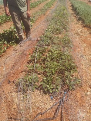 Le producteur a constaté que les filets à mailles fines, habituellement utilisés pour protéger les cultures de tomates contre les tripes, ne convenaient pas aux fraisiers. En effet, ces filets bloquent une partie importante de la lumière et empêchent l’accès des insectes pollinisateurs, éléments pourtant essentiels à la bonne fructification des fraisiers. Face à cette contrainte, il a recherché une solution alternative avec son conseiller agricole, Jihad El Malih, qui lui a proposé l’idée d’un système de tunnel en grillage métallique.