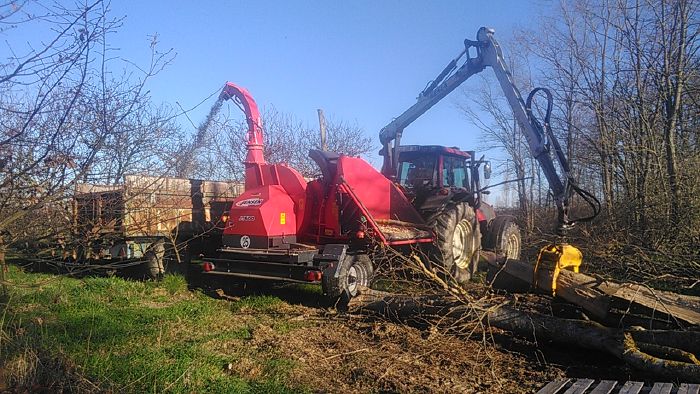 Alex utilise le bois taillé pour enrichir le sol des vergers grâce à un broyeur forestier et son tracteur adapté, partagés en CUMA.
