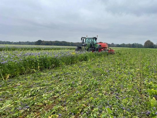 Date de semis : 06/10/2025 sans destruction au préalable de la luzerne, ni travail du sol