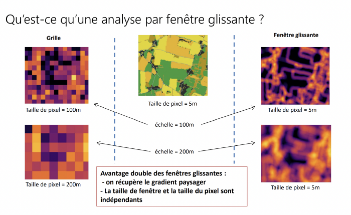 3. Moyenner les résultats dans un rayon de 250 à 300 mètres (fenêtre glissante), pour obtenir un indice global à l’échelle d’un paysage ou d’une parcelle.