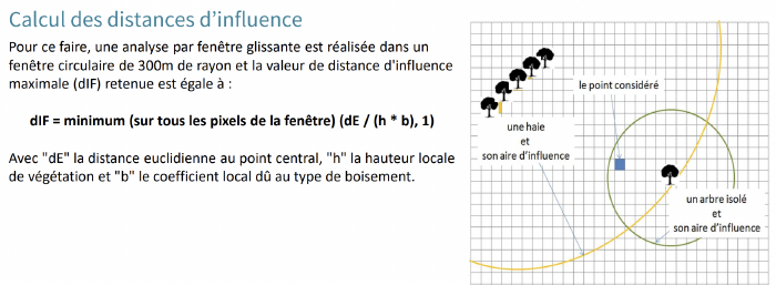 Le grain bocager 3D est calculé à partir de données fournies par l’Institut Géographique National (IGN), notamment le Modèle Numérique de Hauteur de Canopée (MNHC), qui indique la hauteur des arbres.