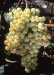 Grappes moyennes à grandes très développées, cylindo-coniques, très ramifiées avec des rafles également très développées, fortement ailées, quelquefois lâches, pédoncules longs forts comme aplatis très gros vers les insertions pas ou peu lignifiés; baies moyennes irrégulières - les grosses voire très grosses n'ont généralement pas de pépins -, rondes ou très légèrement oblongs, peau peu consistante pruinée fine résistante blanc verdâtre à jaune clair devenant roux doré à pleine maturité tendant à brunir pour les parties trop longtemps exposées au soleil, chair ferme peu juteuse sans saveur spéciale marquée. Les pétioles des feuilles sont longs et forts et les feuilles peuvent présenter une dent dans le sinus pétiolaire.