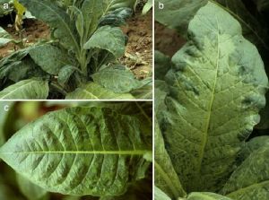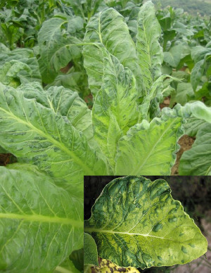 En cas de co-infection avec le Viroses des pucerons sur tabac, on peut apercevoir des lésions nécrotiques inter-nervaires ou nervaires