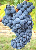 Grappes moyennes, tronconiques, ailées, compactes, pédoncules longs en grande partie lignifiée; baies moyennes, sphériques ou elliptiques courtes, peau pruinée d'une belle couleur noir bleuté. Le feuillage rougit totalement à l'automne.