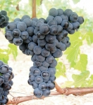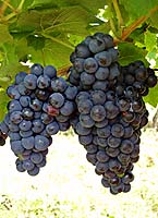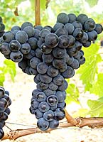 Grappes moyennes cylindro-coniques, ailées, compactes, pédoncules courts; baies petites à moyennes de forme arrondie, peau fragile d'un beau noir bleuté pruinée.