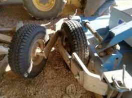 - 1 broyeur pour entretenir l’enherbement de l’inter-rang et pour broyer les bois de taille : le broyeur est équipé d’une roue de jauge latérale, que l’on fait reposer sur la bâche quand on broie, de façon à ce que le sabot du broyeur soit bien guidé et ne morde pas sur la bâche.