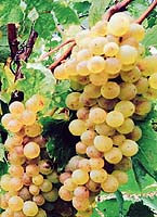 Grappes petites, cylindriques ou cylindro-coniques, plus ou moins compactes, pédoncules grêles de longueur moyenne et de couleur rouge; baies petites à moyennes, de forme arrondie ou très légèrement ellipsoïdes, peau fine assez résistante passant du jaune verdâtre au jaune doré - existe également en rose - parsemé de petits points roussâtres, pulpe fondante peu juteuse sucrée relevée par une saveur particulière. Ses rameaux sont grêles et trainants.