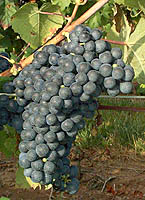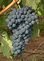 Grappes petites à moyennes, cylindriques, assez compactes, quelquefois ailées, pédoncules moyens avec une partie lignifiée; baies petites, sphériques, peau d'un beau noir bleuté assez résistante.