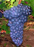 Grappes moyennes, cylindro-coniques, compactes, ailées ou pas, pédoncules courts voire très courts forts et ligneux; baies petites à moyennes, globuleuses ou lègèrement ellipsoïdes, peau assez épaisse résistante d'un beau noir pruiné, chair juteuse légèrement acidulée à saveur simple, pédicelles courts et assez forts.