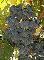 Grappes moyennes à grandes, coniques, plus ou moins compactes, pédoncules longs pratiquement pas lignifiés avec présence souvent d'une ramification assez haute; baies grosses très régulières, ellipsoïdes, peau épaisse d'un beau noir bleuté très homogène, pruine abondante mais peu résistante, chair abondante ferme à saveur simple agréable.