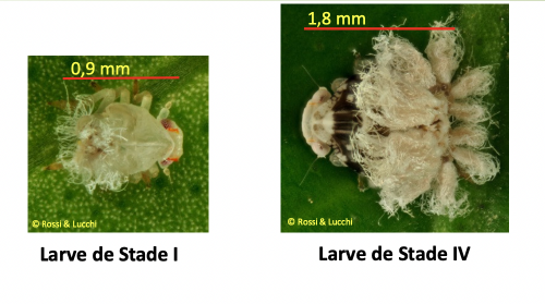 - Protégés par des sécrétions cireuses formant un alignement blanc en zigzag.