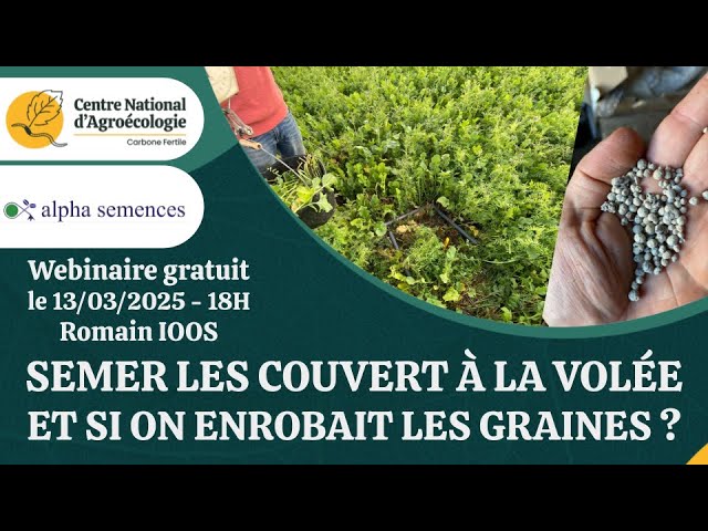 webinaire du jeudi du Centre national d'agroécologie euh bah pour rappel hein comme tous les jeudis euh 8 mois par an on accueille des intervenants pour parler agronomie et technique agricole euh pour vous partager les les dernières innovations pertinentes qui se passent sur le terrain euh ce soir on accueille romain yos de alphaemence euh on a tous plus ou moins vu quelques post sur les réseaux sociaux un moment ou un autre euh qui travaille euh les semi à la volée de couverts végétaux thématique intéressante parce que ben voila