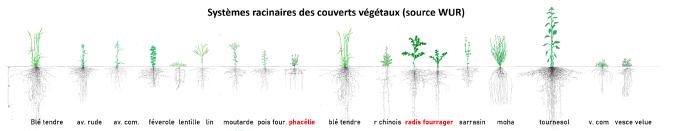 soit carrément l'inhibbe ça peut arriver hein des plantes qui ont les adventistes qui poussent parfois un petit peu en même temps je pense à repousce de blé qu'on a vu beaucoup cette année euh je pense même comme certaines espèces à la viss velue elle est peut-être pas très rapide au démarrage par contre quand elle démarre après sont elle est très inhimitrice des repousches de blé on voit des sols qui sont particulièrement propres en dessous donc ça c'est hyper important de choisir des choses compétitives donc soit par l'espèce soit