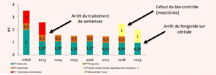 Hors ici, l’exploitation est passée en 100% semis direct, mais ce changement s’est accompagné par une diminution globale de l’IFT.