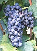 Grappes moyennes, cylindro-coniques, avec quelquefois un ou deux ailerons courts, pédoncules moyens un peu grêles; baies moyennes presque globuleuses ou légèrement ellipsoïdes, peau épaisse pruinée résistante craquante d'un beau noir bleuté - existe également en blanc et en gris cette dernière forme étant très rare -, chair ferme non colorée plus ou moins juteuse à saveur simple assez sucrée agréable, pédicelles assez longs peu forts se teintant de rouge à maturité complète à leurs points d'attache pour le cépage noir.