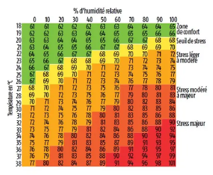 L’indice de température et d’humidité (THI) est un outil permettant de quantifier le niveau de stress thermique des animaux d’élevage, surtout les vaches laitières. Cet indice est de plus en plus d’actualité dans un contexte de réchauffement climatique.