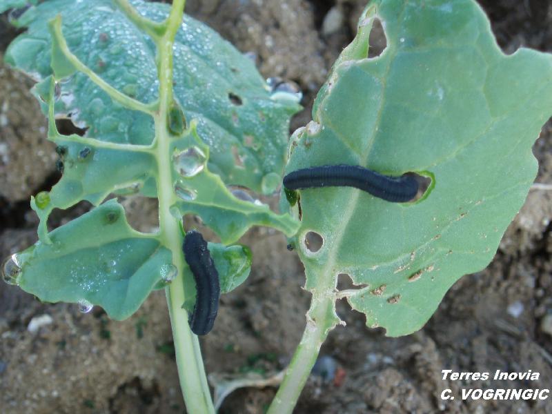 Moyen : Présence de larves sur les plantes avec 10% de la surface foliaire détruite
