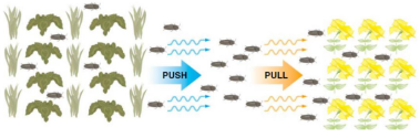 Le « push » qui utilise un agent répulsif comme des plantes répulsives ou des phéromones d’évitement pour éloigner le ravageur de la culture principale.