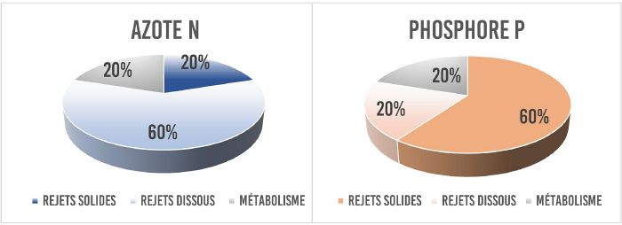 L'élevage aquacole, comme tout système vivant, génère des déchets. Ces rejets, composés de MES et de substances dissoutes, proviennent essentiellement de l'alimentation des poissons : certaines portions de l’aliment ne sont pas consommées, d’autres sont ingérées mais mal digérées, et une partie est digérée mais non entièrement utilisée par les poissons.